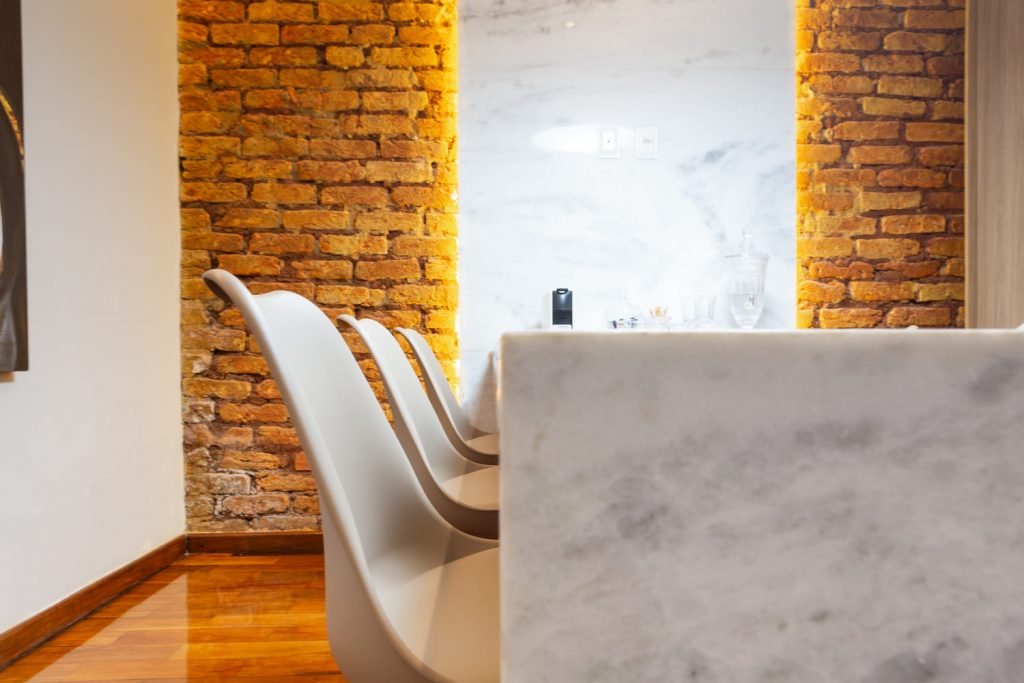 Os acabamentos em mármore e granito normalmente custam caro. O investimento, porém, vale muito a pena se levarmos em consideração que eles agregam beleza aos espaços e são duráveis e atemporais, já que nunca saem de moda.