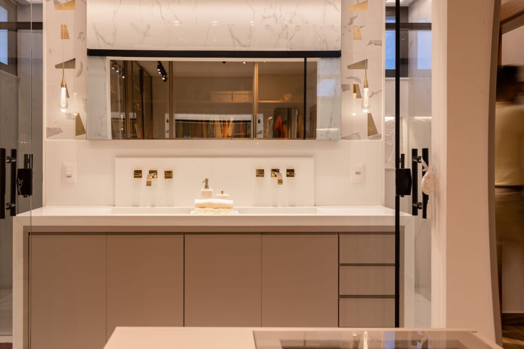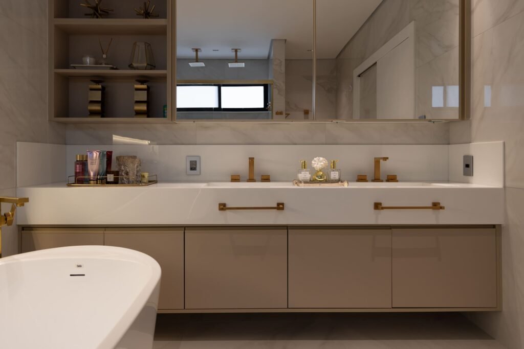 Banho suíte master com bancada em Super Nano – Projeto Arquiteta Fernanda Vilefort